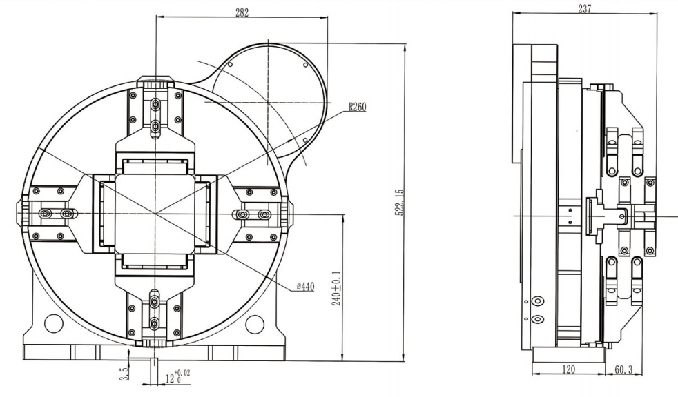 120雙卡盤前后卡盤精密款重卡適用于激光切管機,管板一體機等激光設備,通用性好;外觀精美,整體結構合理,防塵性能更高,使用壽命更長,使用體驗更好;性價比高,加工尾料短,材料利用率高;夾緊定位精度高,重復定位精度高,夾持力穩定可靠;轉速高,轉動慣量小,能適應高轉速運轉,加工效率高;安裝、使用方便;卡爪兩兩聯動,夾持范圍大,卡爪可以快速調整和精準定位,適用于加工不同規格的輕薄管材,適應性好。